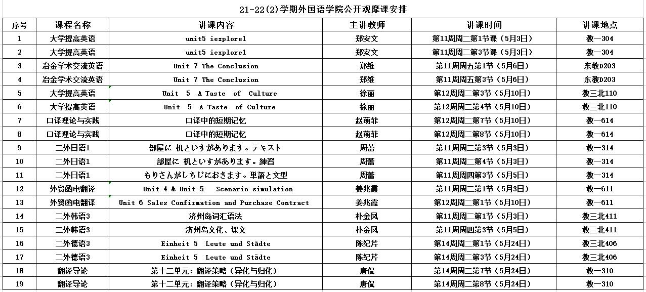 21-22(2)学期太阳成集团tyc33455cc公开观摩课安排