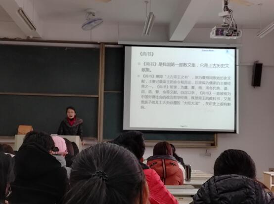 3月20日下午,太阳成集团tyc33455cc在秀山校区教北306教室开展了新学期第一次公开课观摩活动。本次公开课是中文系王其秀老师主讲的《中国古代文学》。王老师首先简要介绍了《尚书》的篇目和版本,从专业的角度分析了这部书的真和伪;接下来,王老师重点介绍了《尚书·周书·无逸》篇,对作品中的主题“君子所其无逸,知稼穑之艰难”进行了精准透彻的讲解,引导员工思考“古为今用”的效果,同时又紧扣作品文体特征进行分析,启发秘书学专业员工在今后的写作中借鉴运用,员工感觉受益匪浅。本次示范课中,课堂节奏安排合理,张弛有度,教学效果好。