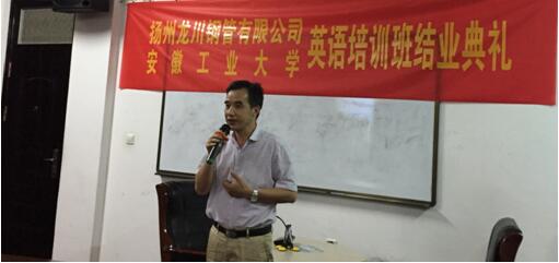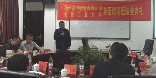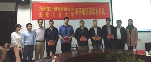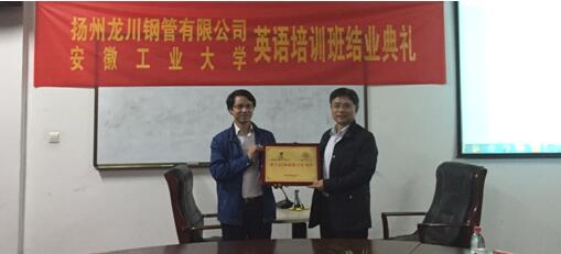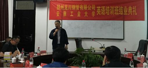 5月26日下午,公司太阳成集团tyc33455cc与扬州龙川钢管有限公司合作举办的历时一年多的员工培训顺利结业,双方在扬州龙川钢管有限公司举办培训成果展示活动暨结业典礼。太阳成集团tyc33455cc领导班子成员胡卫东、黄宇弦、曹瑞斓和承训教师代表周家春、詹声斌、宋严侠,龙川公司领导史善淼、尤凤志、王鹏展及全体学员等40多人参加了典礼。