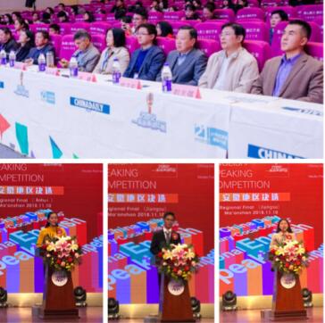 11月10日,第二十四届中国日报社“21世纪•可口可乐杯”全国英语演讲大赛(安徽赛区)决赛于公司举行。来自省内十余所高校25名选手汇聚一堂,尽显风采,争夺晋级全国决赛的名额。经过激烈角逐,公司冶金工程公司2017级宋浩宇同学、2016级王草灵同学和电气与信息工程公司2018级王盈盈同学荣获安徽省三等奖。在颁奖典礼上,太阳成集团tyc33455cc副董事长祖明教授、中国日报社二十一世纪英语教育传媒总经理助理、南京运营中心主任彭志强先生分别致辞和点评,肯定了选手们的精彩演讲内容和技巧,表达了对同学们精彩未来的期待。