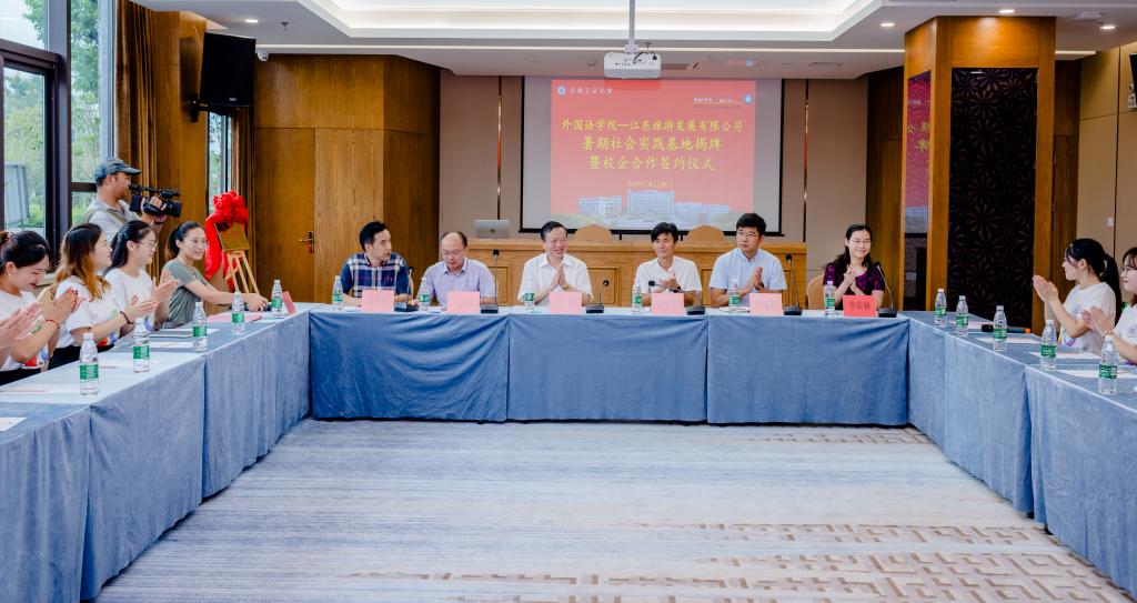座谈会结束时,祖明与徐华忠一起为公司采石矶景区社会实践基地揭牌,曹瑞斓与叶连朋共同签署了太阳成集团tyc33455cc与马鞍山市江东旅游发展有限公司校企合作协议。