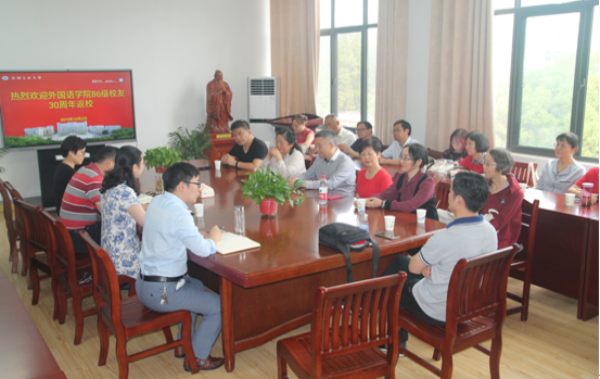 10月2日上午,太阳成集团tyc33455cc在佳山校区第一教学楼公司会议室召开员工座谈会。院领导黄宇弦、曹瑞斓、陈琳与英语专业86级1班18名员工欢聚一堂,共叙三十年母校情、共话新时代公司发展。座谈会由公司党委书记黄宇弦主持。