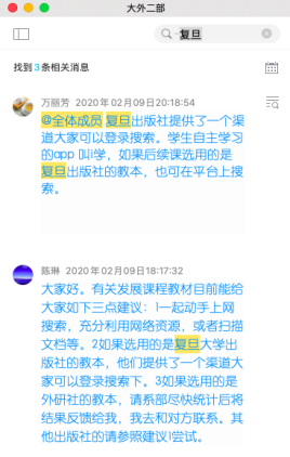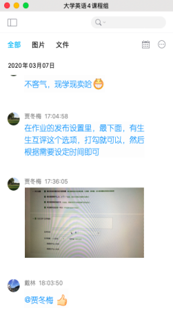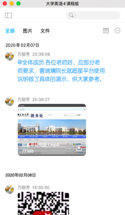除此之外,公司领导也给予了大学英语4课程组很大的支持。经理曹瑞斓教授常常在群里对老师们的疑问进行解答,并录制平台的使用说明公开课供全校老师观摩;副经理陈琳教授也积极寻求出版社的帮助,解决了由于疫情原因导致老师缺少教材的燃眉之急。