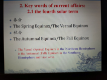 自疫情暴发之时,詹老师就时刻关注国内外有关于新冠肺炎的中英文报道。在线上教学开始前,詹老师建议线上教学分享时政关键词,主动请缨,结合WHO(世界卫生组织)网站与新冠肺炎有关的提问与回答,为课程组精心收集《新冠肺炎疫情防控相关中英文词汇》三批次、《新冠肺炎公众预防提示》多语种版本的资料并制作成文档分享给员工。在注重时政教育的同时,詹老师也将国内外的媒体报道作比较,彰显国家制度的优越性,以帮助同学们增强“四个自信”。此外,詹老师结合惊蛰、春分和清明等节气等时政关键词,在帮助同学梳理有关知识点的同时,也让员工们感受节气之美。