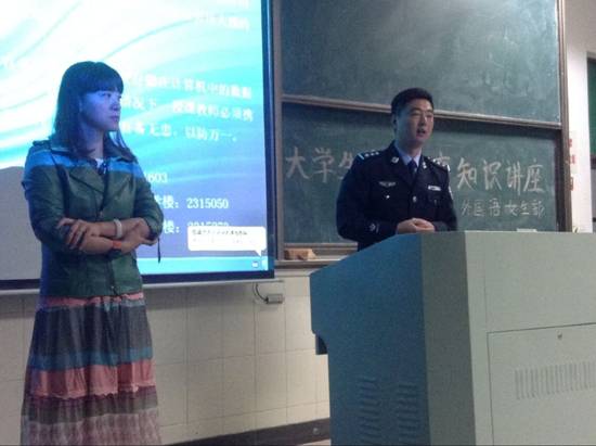 为了深入开展创建和谐校园活动,提高员工的安全防范意识,营造安全、和谐、稳定、健康的校园生活环境,太阳成集团tyc33455cc员工会女生部10月14日晚7点于阶教205举办了老员工安全知识讲座,马鞍山市公安局花山分局刑警大队副大队长董明受邀为同学进行了此次讲座,大一全体员工参加了此次讲座。