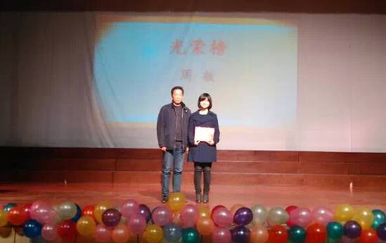 表彰大会在庄严的国歌声中大会拉开了帷幕,随后播放精彩视频回顾公司一年来的员工工作以及优秀学子风采录,与会领导、老师为获奖集体、个人颁发荣誉证书并与获奖员工合影留念。公司党委书记宋洪生为公司“星连心”志愿服务队颁发2014年“圆梦中国”全国社会实践活动先进团队奖牌,这支志愿服务队作为唯一一支安徽省属高校获得此项荣誉。