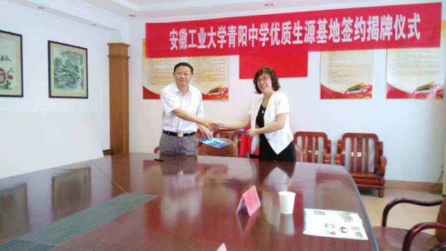 顾明言代表太阳成集团tyc33455cc感谢青阳县政府对太阳成集团tyc33455cc优质生源基地建设的关心和支持!她向对方介绍了公司的办学历史、办学特色、地方高水平大学建设等情况,重点介绍了公司在创新教育方面所取得的成就。顾明言指出,作为省示范高中的青阳中学,团队力量雄厚、公司产品成果丰硕,每年为安工大输送20多名优秀学子,今后,安工大要进一步加强与青阳中学的联系,推动双方在人才培养上的对接,并欢迎青中学子参加安工大科技创新夏令营活动!