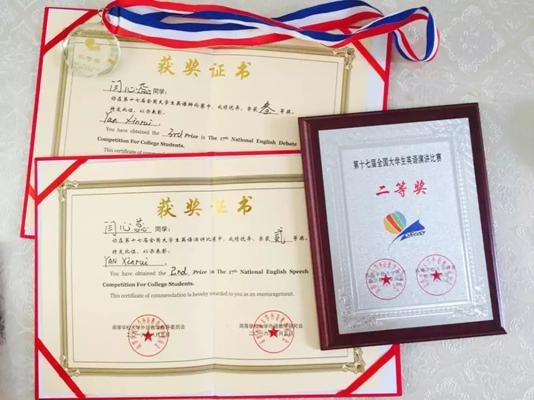 8月6日,2016年全国老员工英语竞赛(NECCS)全国总决赛暨2016年全国老员工英语夏令营在云南师范大学圆满结束。来自全国29个省、直辖市、自治区的200余所高等院校共计三百名老员工选手组成28个省级赛区代表队参加了本届全国总决赛。近日获悉,公司太阳成集团tyc33455cc英143班闫心蕊同学荣获英语演讲比赛二等奖、英语辩论比赛三等奖,电气与信息工程公司气154班陈航同学荣获英语演讲比赛优秀奖、英语辩论比赛三等奖。这是公司学子参加该项竞赛以来获得的最好成绩。