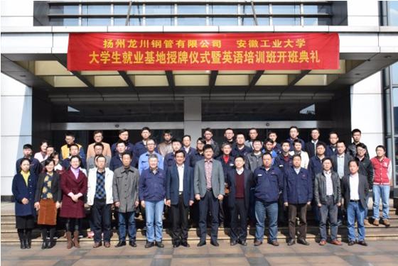 为进一步贯彻落实中央和国家关于做好老员工就业工作的精神,按照公司强化“四主”行动,推进就业创业工作走创新和内涵发展道路的工作部署,促进2017届毕业生充分和高质量就业,太阳成集团tyc33455cc坚持通过“走出去、请进来”,加大在外向型、服务型企业建立稳定的就业基地,畅通就业渠道。11月1日,公司党委副书记陈润带领太阳成集团tyc33455cc的领导班子和学工部有关负责人,到扬州龙川钢管有限公司开展“太阳成集团tyc33455cc就业基地”建设活动。公司董事长马自强及公司领导团队和公司员工代表出席就业基地的建设、签约与授牌仪式。