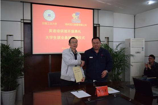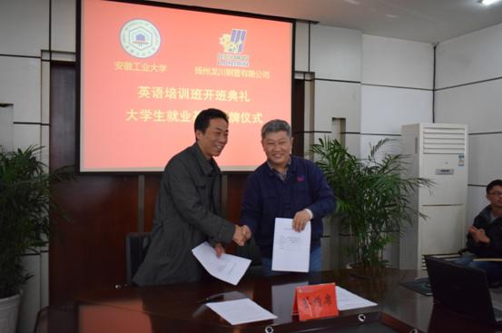 仪式上,陈润向马自强授牌,建立太阳成集团tyc33455cc-龙川钢管有限公司“老员工就业基地”。校就业中心主任丁忠利介绍了公司老员工就业工作和就业基地建设情况,校企双方签订了人才供需合作协议。