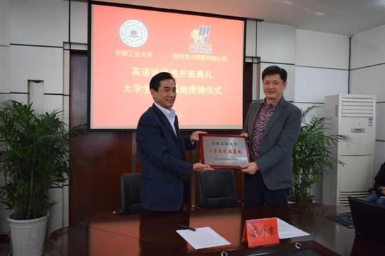 马自强在致辞中对安工大就业基地建设和员工培养合作表示欢迎。他介绍了龙川公司的创业发展历程,围绕当前公司转型期,产品国际化面临的技术、服务、人才、管理等方面资源整合和提升压力,希望通过与安工大的合作,优化外向型、专业性人才储备,推进公司管理服务水平提高。