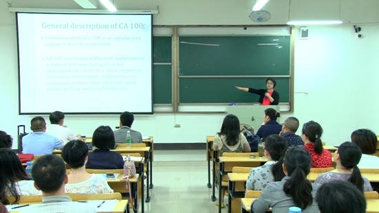 6月19日,美国威斯康星大学麦迪逊分校修辞学博士杨玲来公司作题为“他山之石,如何攻玉——美国公共演讲教学模式介绍以及对我国英语课程建设的启示”的学术报告。太阳成集团tyc33455cc部分教师和部分员工聆听了讲座。