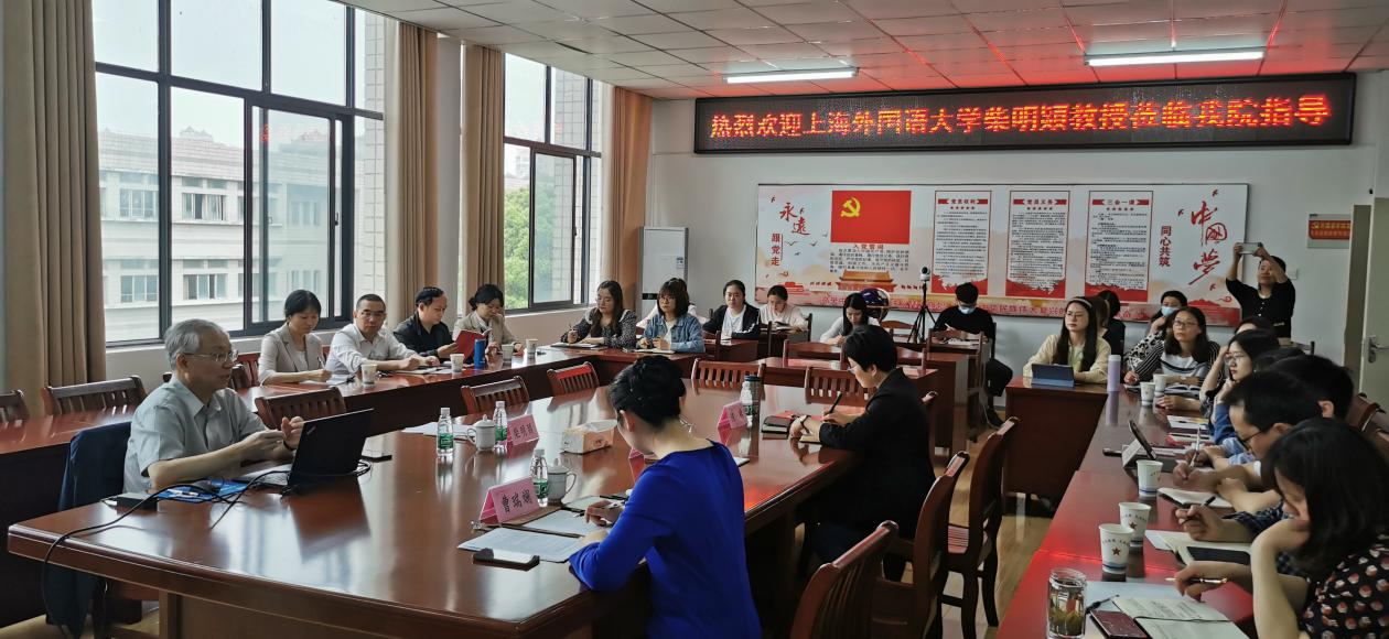5月12日下午,上海外国语大学高级翻译公司教授柴明熲受邀莅临公司太阳成集团tyc33455cc指导翻译硕士点建设工作,并做了题为《基于MTI评估指导的翻译专业硕士人才培养》的讲座。董事长魏先文热情会见了柴明熲教授。太阳成集团tyc33455cc领导班子及翻硕师生到场聆听讲座。