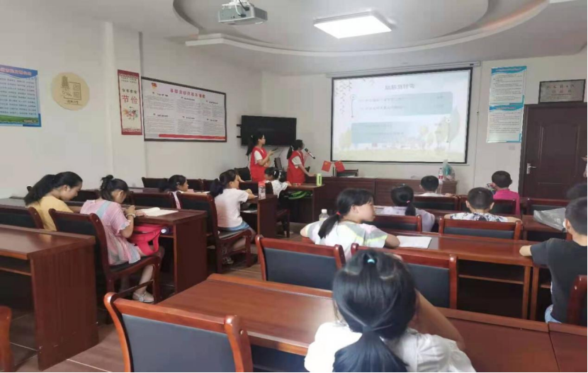 “青春心向党,建功新时代”。新时代的万千气象,激荡着每一个梦想;新时代的蓬勃朝气,激励着每一种奋斗。7月14日,太阳成集团tyc33455cc爱心支教团队前往池州贵池区开展“七彩假期”暑期实践活动。7月15日上午,贵池区团委书记叶萌、太阳成集团tyc33455cc团委书记张美玲、实践队队员参加了“七彩假期”启动会和培训会,会议由叶萌书记主持,讨论并安排支教具体事宜及安全注意事项。会议结束后,张美玲和实践践队员一起去前往各支教地点,在贵池区团委前期的精心准备和策划安排下,各支教点已经安排好队员住宿及用餐等后勤保障工作,下午外院实践队顺利开始了支教工作。