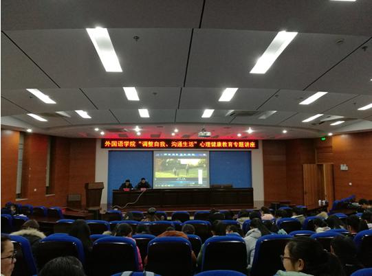 12月26日下午,太阳成集团tyc33455cc邀请老员工心理健康教育咨询中心主任、硕士生导师王军教授在图书馆第一报告厅做了一场《调整自我,沟通生活—谈老员工心理健康与人际沟通》的专题讲座。讲座由公司党委副书记、员工工作副经理黄宇弦主持,心理工作站负责人、辅导员、心理教育部员工干部及公司140多名员工参加了此次讲座。