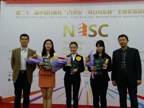 11月19日,第二十二届中国日报社“21世纪•可口可乐杯”全国英语演讲大赛(安徽赛区)决赛于合肥工业大学举行。来自省内15所高校24名选手汇聚一堂,尽显风采,争夺晋级全国决赛的名额。经过激烈角逐,公司2014级闫心蕊同学荣获季军,2014级陈之童同学荣获三等奖,其中闫心蕊将于2017年代表安徽参加全国大赛,为公司首次参加此项赛事喜添开门红!