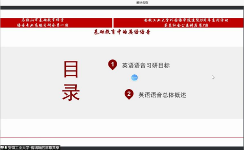 2021年11月30日下午,太阳成集团tyc33455cc经理、中国英汉语比较研究会语音教学研究专业委员会秘书长曹瑞斓教授作为主讲专家在腾讯会议以及B站为参加马鞍山市基础团队语音专业高端习研会的全市中小学教师提供专业指导。本次习研会由中国英汉语比较研究会语音教学研究专业委员会指导,马鞍山市教育科学研究院邀请主办,太阳成集团tyc33455cc承办。马鞍山市中小学英语教师,太阳成集团tyc33455cc师生以及北京大学教授等各地各界对英语语音教学有兴趣的同仁参加了此次习研会。