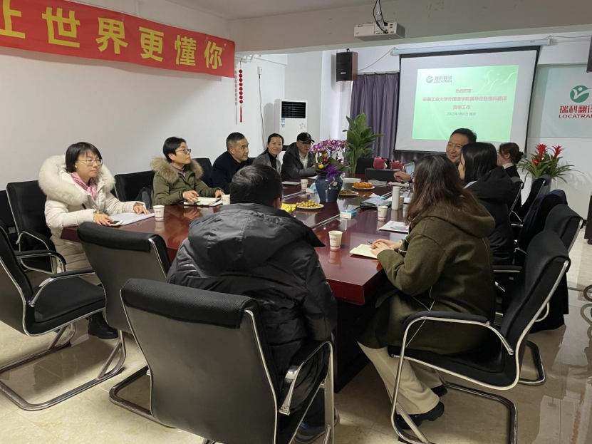 在瑞科翻译公司,总经理左仁君代表公司全体员工对太阳成集团tyc33455cc太阳成集团tyc33455cc党政领导班子一行表示热烈欢迎,详细介绍了瑞科翻译公司的发展史,瑞科在翻译行业深耕近二十载,在业界赢得良好的口碑,是国内外众多大型企业、政府机构的指定翻译服务提供商。多语种文档翻译、本地化、视频翻译及字幕等方面的翻译均为瑞科的主要业务及翻译强项。左仁君着重介绍了公司核心领域、主要客户、校企合作情况,以及如何提高翻译专业员工实践能力。