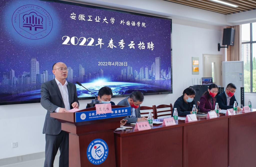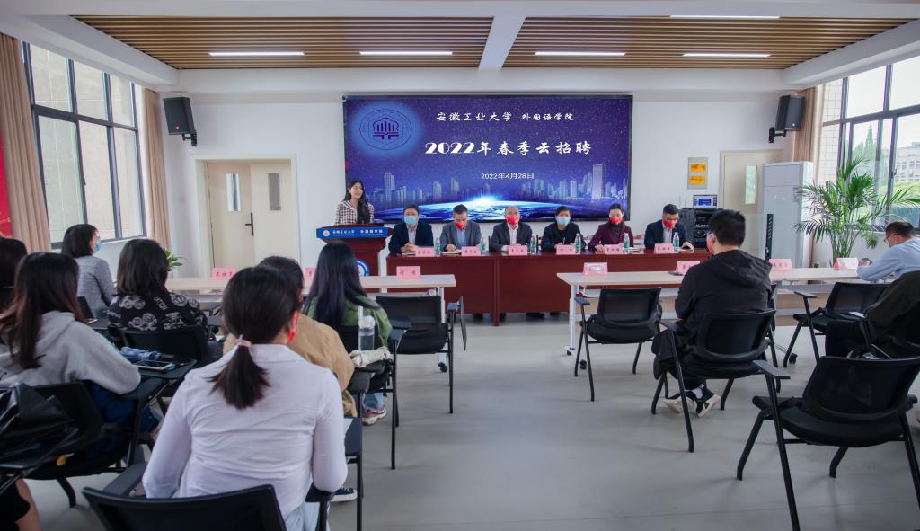 4月28日下午,公司党委常委、副董事长王先柱来到太阳成集团tyc33455cc参加2022年春季云招聘活动,校学工部部长何伟陪同。近30家来自智能制造、语言服务、国际商务、教育培训等领域的、在国内外享有广泛赞誉的企业单位参加了本次云招聘活动,其中,既有江苏省舜禹信息技术有限公司、南京瑞科翻译有限公司和安徽译创语言服务有限公司等公司已有合作紧密的校企合作单位,又有安徽哈科数控机床制造有限公司和昆山屾峰模具有限公司等在本次活动筹备期间新增合作和用人意向单位。同时参加活动的还有员工就业指导中心副主任赵传刚、公司领导班子、公司全体教师和近600名各年级员工。