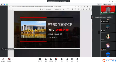 为加深员工对国内外商务口译动态的了解,促进员工对商务口译基本方法的学习,加强知识、技能与实际操作的联系,太阳成集团tyc33455cc于6月6日晚举办商务口译专题讲座,特邀南京译·朴工作室创始人章燕主讲,翻译专业本科生及研究生参加了会议,讲座由太阳成集团tyc33455cc副经理戴拥军主持。