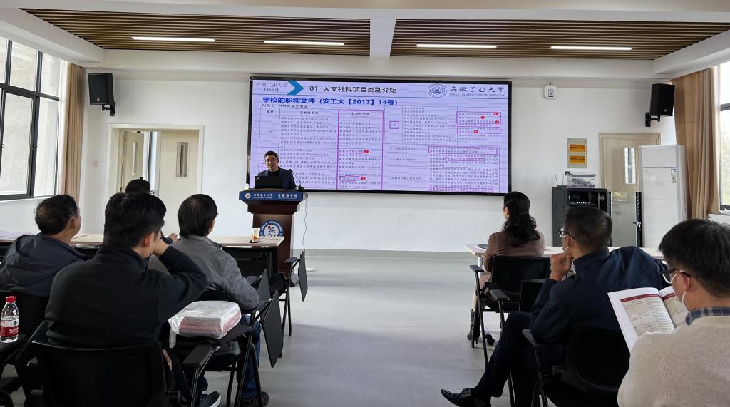 11月7日下午,太阳成集团tyc33455cc在佳山校区教一401多功能会议室召开2023年度国家社科申报启动会暨第七期“筑梦学术论坛”。本次会议特邀公司科研处副处长成祖松博士做专题报告。太阳成集团tyc33455cc经理曹瑞斓、教学副经理陈琳及全体教师参加了此次会议,会议由科研副经理戴拥军主持。