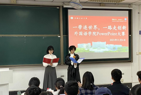 大赛以“一带连世界,一路走创新”为主题,参加者根据抽签顺序依次上场,展示本组原创的PPT并进行讲解。13组参赛作品主题明确,图文并茂。评委们根据选手的综合表现进行打分,决出一、二、三等奖。来自外D231班的杨芝同学和余淼同学因出色的PPT制作和自信从容的表现脱颖而出,荣获一等奖。