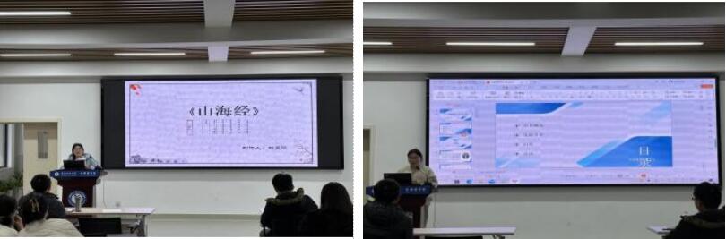 此次汇报会由2023级研究生陈启栋、王安妮、刘晨曦、李瑶等4位同学进行汇报。陈启栋同学就《隐喻汉英翻译原则研究》一书,分别从作者简介、文本内容简介、隐喻汉英翻译原则、启发四个方面进行了介绍。王安妮同学从文本分析视角出发,分析了《习近平谈治国理政》法治篇中体现的法治思想,汇报时重点介绍了文本分析定义、文本分析工具、实践过程等内容。刘晨曦同学就《山海经》进行了阅读汇报,主要包括文本简介、文本写作特点、文献价值、神话思维和哲学思想。李瑶同学分享了对《译道探微》部分章节的阅读体会,涵盖全书概况、选篇目的、启发、总结四部分。