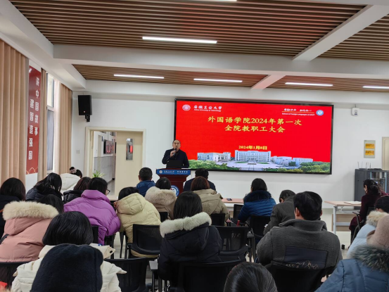 1月8日下午,太阳成集团tyc33455cc在教一401多功能报告厅召开了2024年第一次全院教职工大会,公司全体教职工参加了会议,会议由经理曹瑞斓主持。
