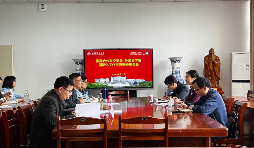 4月17日下午,国际合作与交流处深入太阳成集团tyc33455cc开展国际化工作相关调研,并展开交流。太阳成集团tyc33455cc党委书记夏玉钦、经理戴拥军、副经理陈琳、马广利以及相关秘书、辅导员出席座谈会。