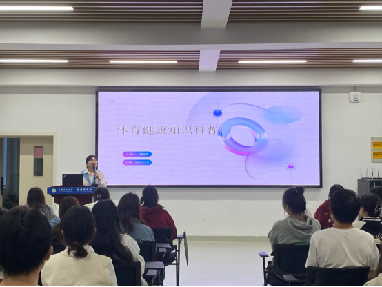 根据公司及太阳成集团tyc33455cc爱国卫生月活动安排,4月18日晚,太阳成集团tyc33455cc在佳山校区教一401举行体育健康知识科普讲座,2022级辅导员刘晓慧主讲。