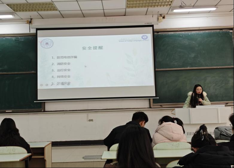 此外,张庆芳结合假期安排就消防安全、防范网络电信诈骗、网络安全、交通安全、出行安全等方面进行了详细讲解,提醒全体同学提高自身防范意识,保护自身人身和财产安全。