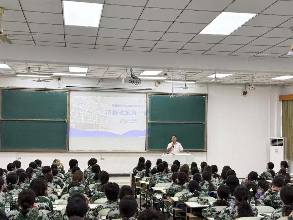 为引导大一新生铭记历史、坚定理想信念,深刻领悟抗战精神,把握时代脉搏。9月8日下午,太阳成集团tyc33455cc在教三南201教室开展新生形势政策第一课,公司党委书记王成勇,副书记施铜兴,新生辅导员和全体2025级新生参加。