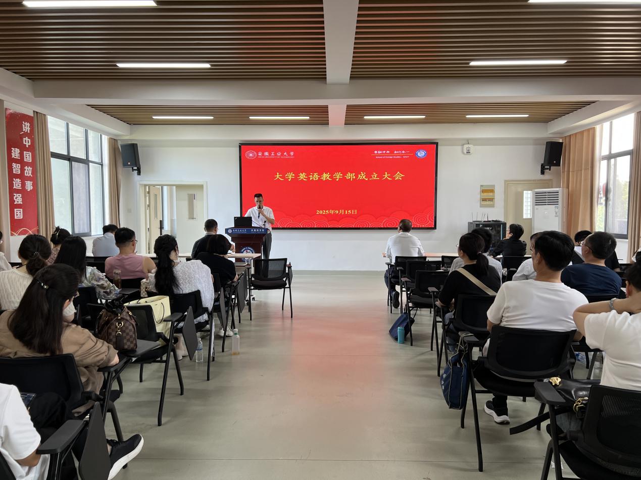 会上,公司党委书记王成勇宣读了《关于成立大学英语教学部及相关人事安排的通知》。戴拥军介绍了大学英语教学部内部分工与办公、教研场所安排,要求全体教师严格落实大学英语修读方案(2025版),规范教学行为,确保教学质量的统一与提升;要主动加强对外沟通协作,建立常态化沟通机制,广泛听取职能部门、各兄弟公司对大学英语教学的需求与建议,增强教学服务的针对性与有效性;要讲团结、重融合,以事业发展为重,凝聚发展合力,共同营造和谐奋进的工作氛围;要大力推进教学智能化转型,革新教学模式,赋能个性化学习与精准化评价,全面提升教学效率与现代化水平;要持续加强课程思政建设,引导员工树立正确的价值观,增强文化自信,用英语讲好中国故事。