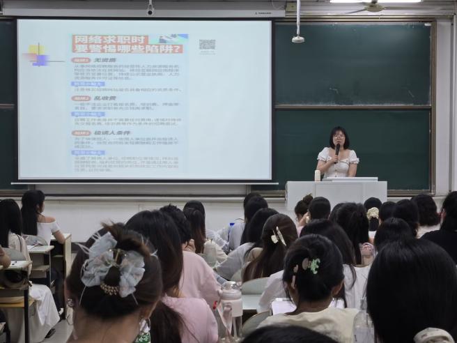 刘晓慧结合往年就业与升学情况,通过数据对比与典型案例,从毕业生规模、就业结构、地域分布、行业流向等多个方面,系统分析了近三年毕业生的就业状况。她鼓励同学们在校期间积极提升专业能力、拓展实习实践,明确职业目标,充分做好求职准备。