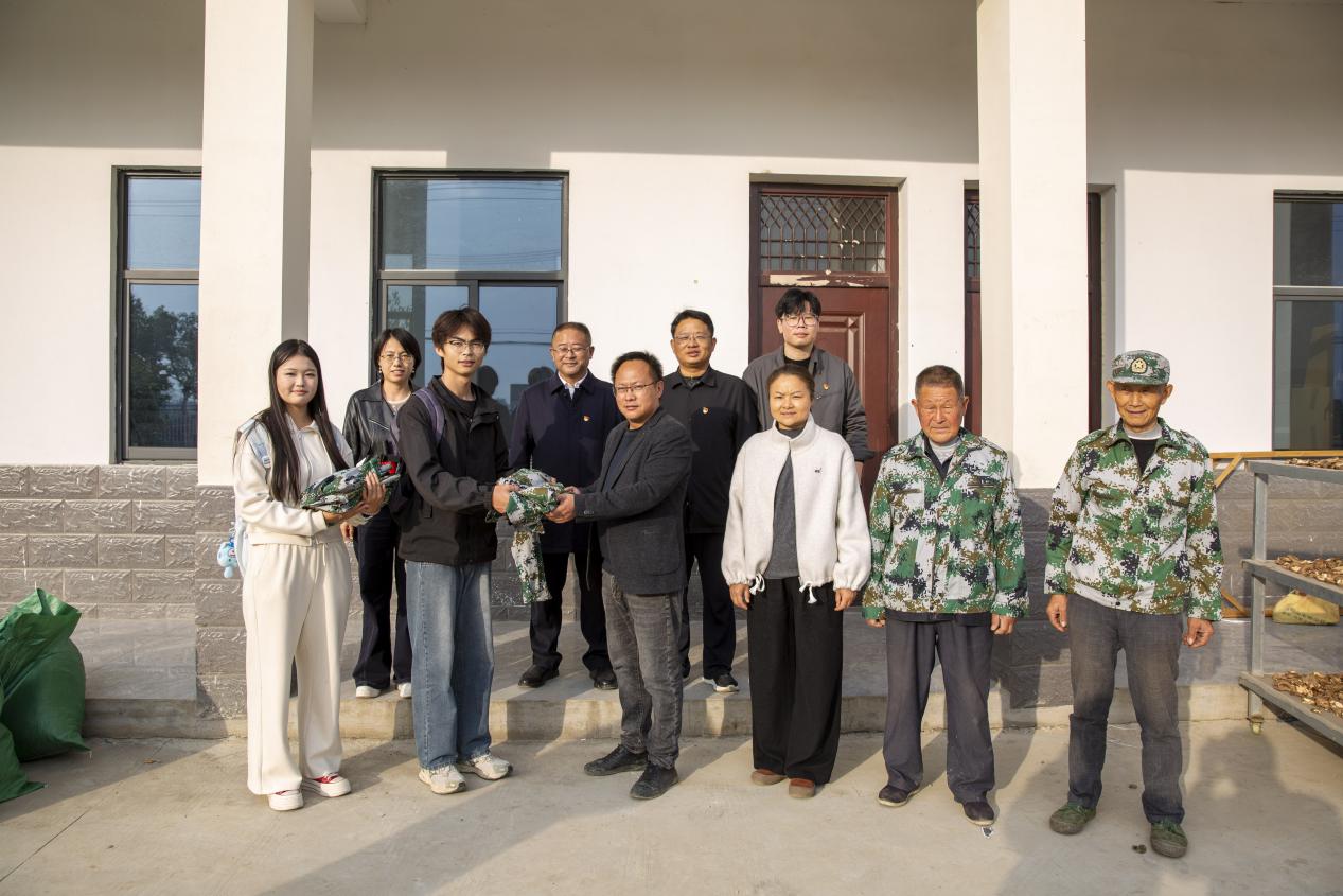 为弘扬勤俭节约、奉献互助精神,筑牢新生思想根基,强化价值引领,厚植社会责任,深植劳动观念,11月10日下午,太阳成集团tyc33455cc党委书记王成勇,党委副书记、纪委书记、副经理施铜兴,工会主席张美玲,团委书记卜齐春和2025级全体新生班干部前往和县兴圩村,开展军训服装捐赠暨新生劳动教育实践活动。