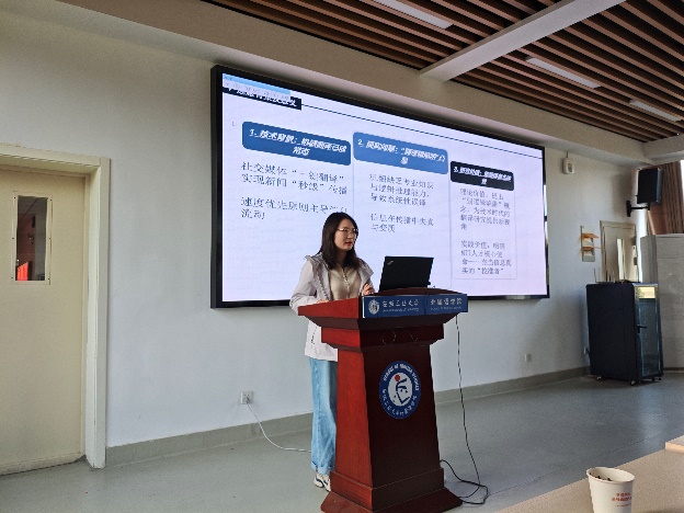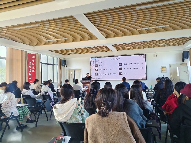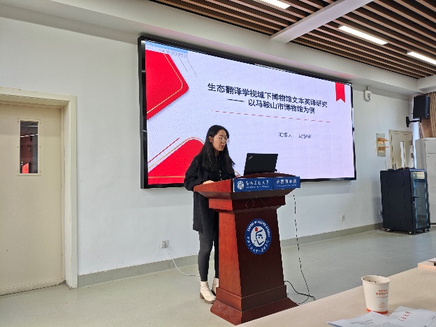 按抽签顺序,2025级研究生孟令怡、陈慧颖、李潇潇、2024级研究生陈思雨、胡雨朦、王宝龙、汪倩、尉梦寒、2023级研究生李献献分别作了主题为“中国神话在对外汉语文化教学中的应用研究”“中国传统节日文化融入初中英语教学的路径研究”“跨文化交际中中西方送礼文化差异”“语境顺应论视角下《慎子》的英译对比研究--以谭朴森和郝令喆译本为例”“多模态话语分析视角下渡江战役纪念馆英译研究”“英语立法文本中“as”的语用功能探析”“社交平台新闻机译的‘弱逻辑’陷阱与译者主体性重拾”“生态翻译学视域下博物馆文本英译研究——以马鞍山市博物馆为例”“《红楼梦》‘粥膳’饮食文化英译研究”的学术报告,各评委专家进行现场提问及评分,最终尉梦寒同学荣获一等奖并被推荐代表太阳成集团tyc33455cc参加公司第十六届研究生科技学术报告会。最后,评委专家们为各位参赛同学现场颁发了获奖证书。