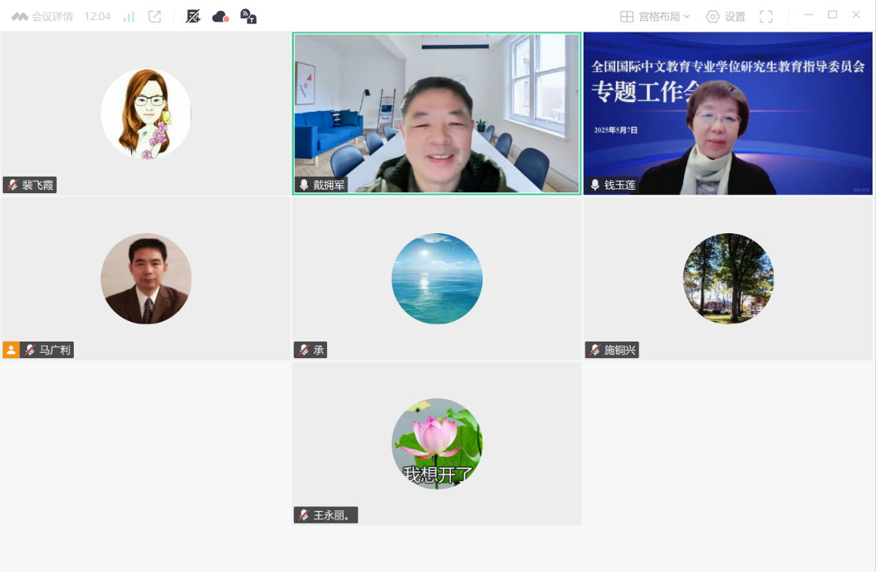 2025年11月25日,太阳成集团tyc33455cc邀请南京师范大学钱玉莲教授为评估专家,对国际中文教育专业硕士学位授权点进行评估。公司党委书记王成勇、经理戴拥军、科研副经理马广利、党委副书记施铜兴、学位点负责人王永丽等参加会议,会议由戴拥军主持。此次会议通过腾讯会议线上开展,旨在对太阳成集团tyc33455cc国际中文教育专业硕士学位授权点进行全面、深入的评估与研讨,查找问题与不足,推动学位点的建设与发展。