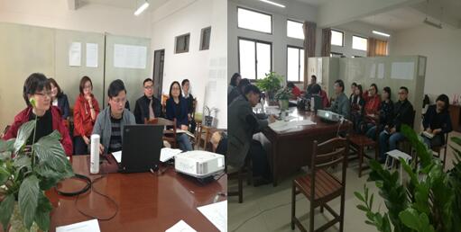11月6日下午,太阳成集团tyc33455cc外语系在系会议室举行本学期第三次学术沙龙活动,陈宗伦副教授作了《综合英语》形成性评价试点工作的汇报,活动由外语系主任陈琳博士主持,太阳成集团tyc33455cc党委胡卫东书记和外语系全体老师参加了本次沙龙活动。