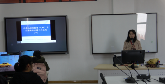 为了增强翻译专业一年级员工对于翻译技术和计算机辅助翻译的理解,2019年12月12日,太阳成集团tyc33455cc在佳山校区第一教学楼604笔译模拟实训室举办了题为“SDL Trados在CAT项目流程中的应用”的讲座。本次讲座由上海文化贸易语言服务基地翻译技术高级培训师黎梦蝶担任主讲。