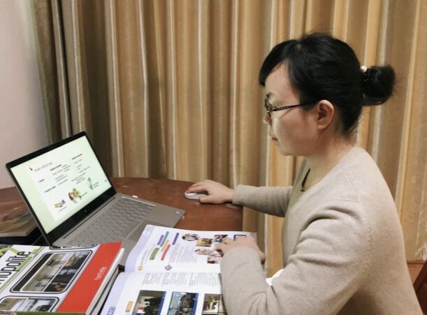 首先是录播视频与同步互动相结合,实现知识点学习与口语语音操练两不误。吉老师推翻了原先的备课资料,根据线上教学的特点,重新安排课程内容、设计修改课件,将法语语音中的拼读规则、法语语法、交际词汇等知识性强的重难点录制成教学视频,利用超星学习通平台让员工反复观看学习。同时,利用腾讯会议等软件,定期与员工进行直播同步互动,将在教学视频里学到的知识点转化成口语实战,进行法语诗歌短文拼读训练、交际会话操练等实践训练。吉老师会及时纠正同学们的发音并参与到同学们的对话中,实现师生互动、生生互动。