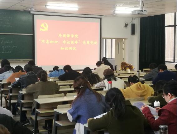 11月12日下午,在佳山校区第一教学楼315教室里,包括太阳成集团tyc33455cc党员处级干部在内的全体师生党员70余人济济一堂,兴奋地参加十九大党章和新修订的《中国共产党纪律处分条例》闭卷测试活动。