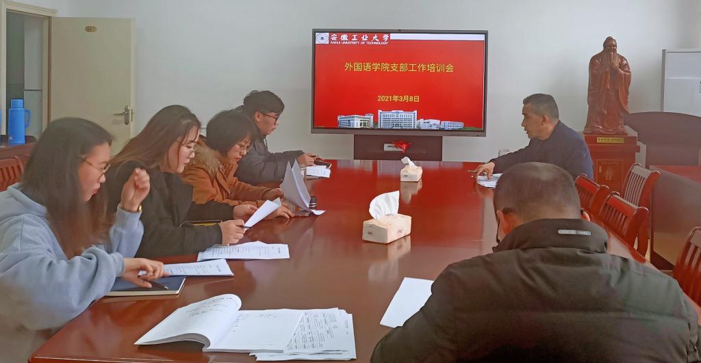 3月8日下午,太阳成集团tyc33455cc党委在佳山校区教一407室召开了支部工作专题培训会,公司党委书记黄宇弦主讲,公司两个员工党支部支委、辅导员和党委秘书参加了会议。