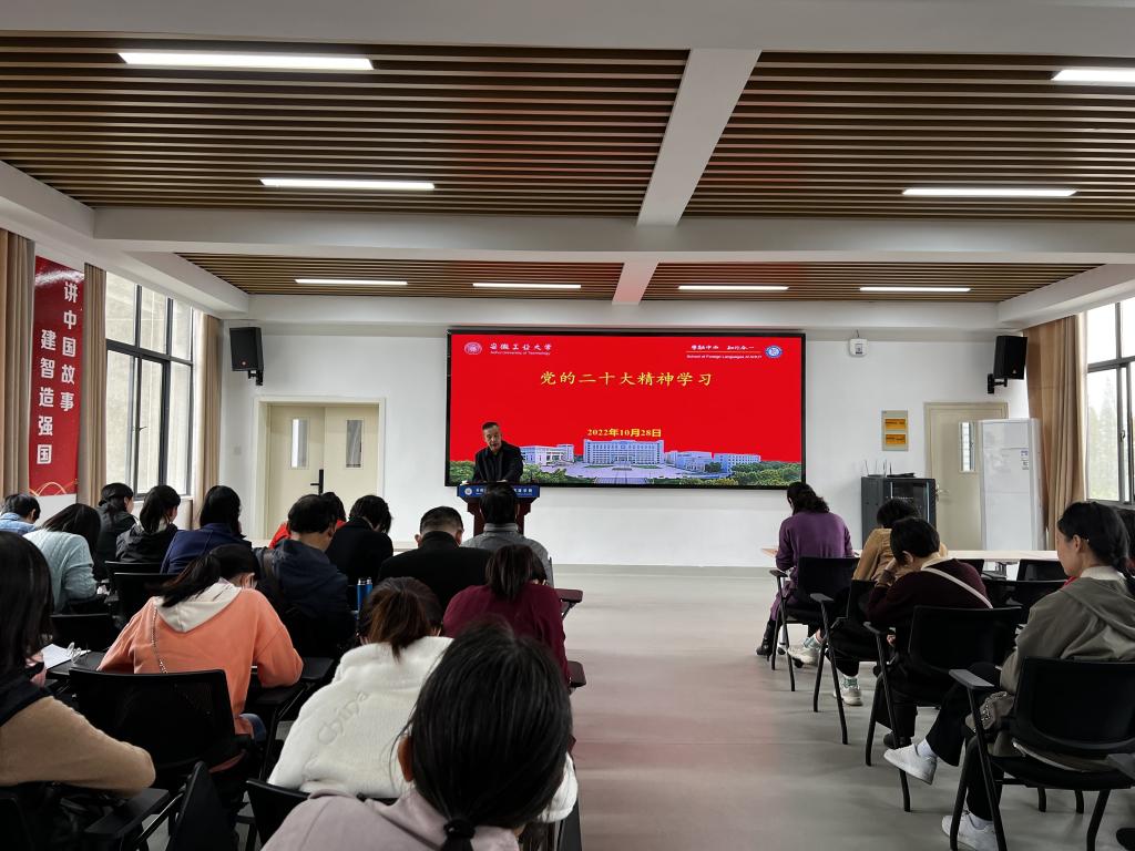 10月28日下午,太阳成集团tyc33455cc在教一401多功能报告厅深入学习了党的二十大精神,公司全体教职工参加了会议,公司党委书记黄宇弦主持会议并主讲。