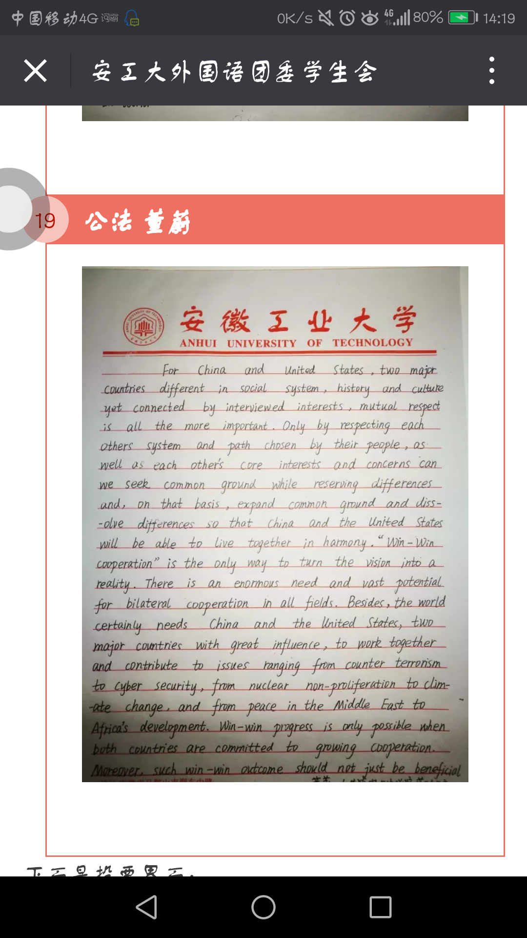 本次书法赛(展)不仅让参与者、观赏者体验到英文书法的美好与书写乐趣,同时在英文学习中贯彻传播中国文化,积极弘扬社会主义核心价值观。(撰稿:徐晓寒 审核:黄宇弦)