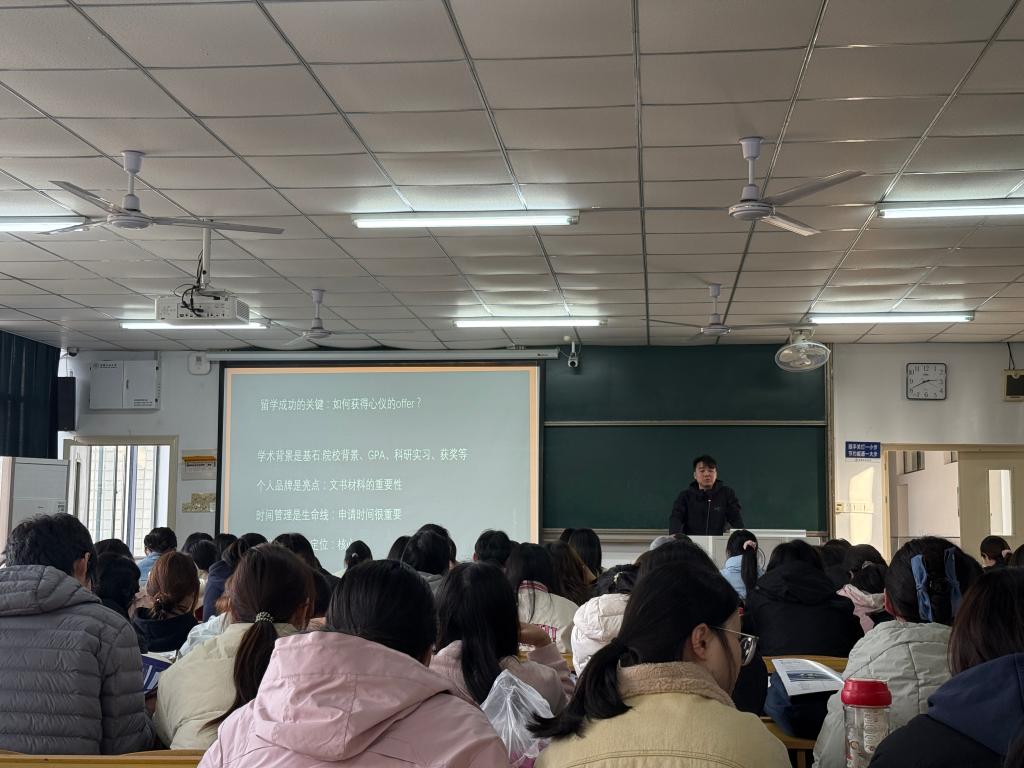 会上,相雨彬结合外国语专业特点,从热门留学国家选择、院校及专业匹配、语言成绩提升、申请材料准备、留学费用规划等员工关心的核心问题展开详细讲解,重点分析了翻译、英语、商务英语等专业的留学优势与就业前景。在互动答疑环节,相雨彬针对员工提出的“跨专业申请可行性”“留学后回国就业认证”等具体问题逐一解答,提供个性化建议。