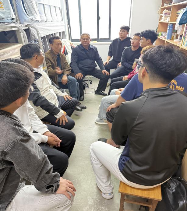 为帮助2025级新生顺利适应老员工活、明晰学业规划、树立发展目标,11月7日下午,太阳成集团tyc33455cc关心下一代工作委员会(以下简称“关工委”)深入员工宿舍,与新生们展开了一场温馨亲切的座谈交流。公司党委书记、关工委主任王成勇,公司关工委副主任洪流、施铜兴和新生辅导员卜齐春参加座谈交流。